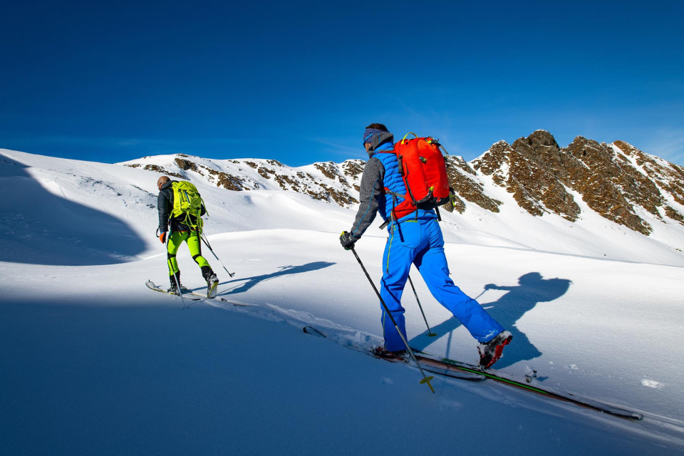 Grat, 3 – 3,5 Std., 970 Hm; Abfahrt: üb. d. Lackneralm, Freie Flächen bis 30° u. Forststraße, Variante Gipfelhang 35°;